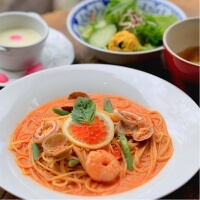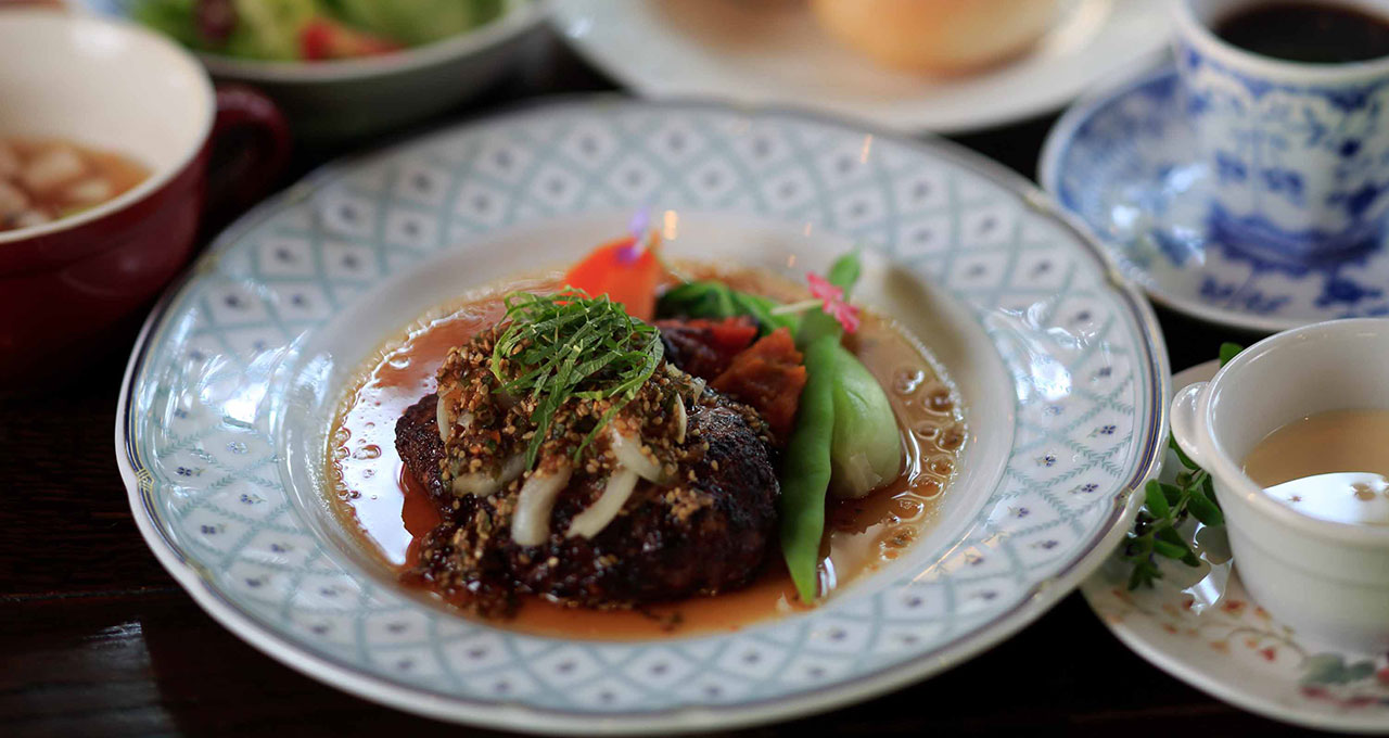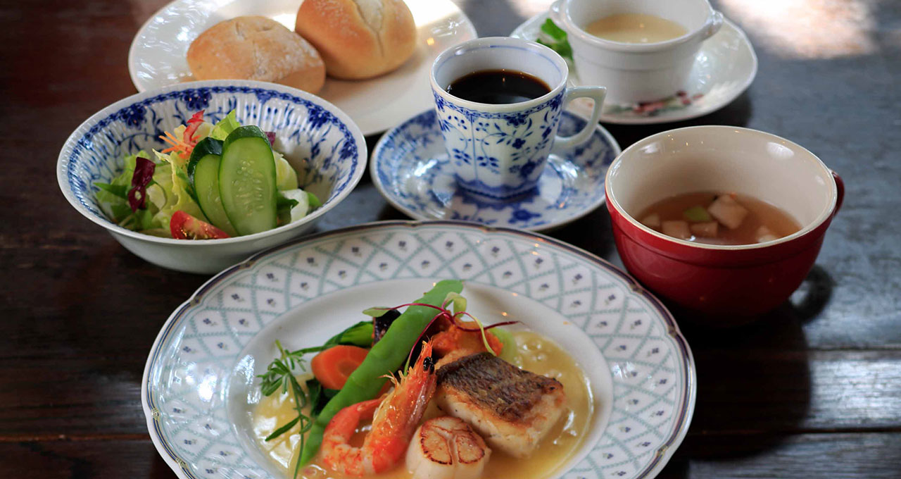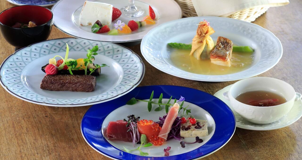 地元の契約農家から仕入れた旬の朝採り野菜や、特選福島牛サーロインステーキ、庭で採れるハーブを使った創作欧風料理から、色とりどりのフルーツやスイーツをのせた『妖精のデザート』など。彩り鮮やかなお料理をご用意いたします。